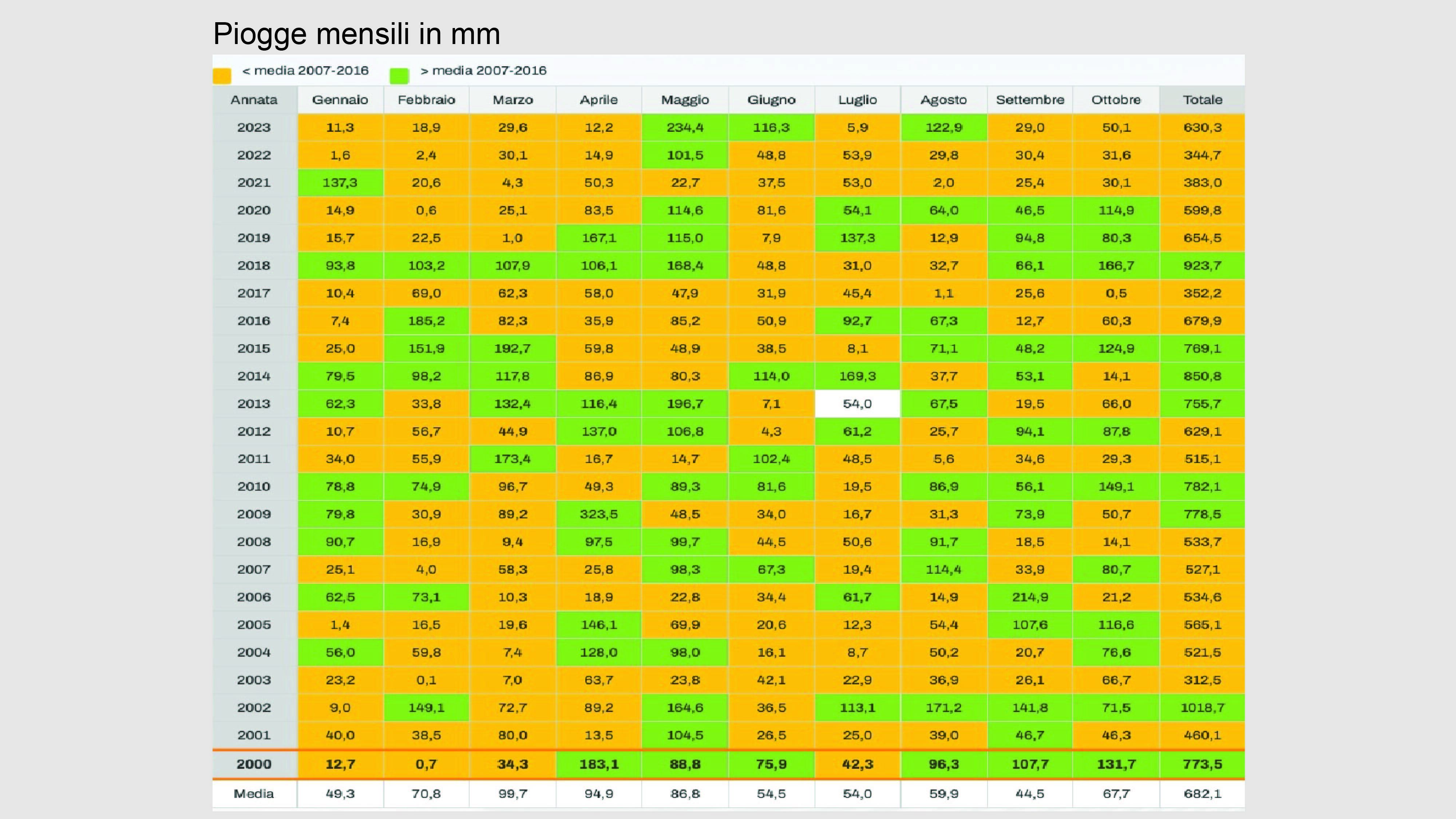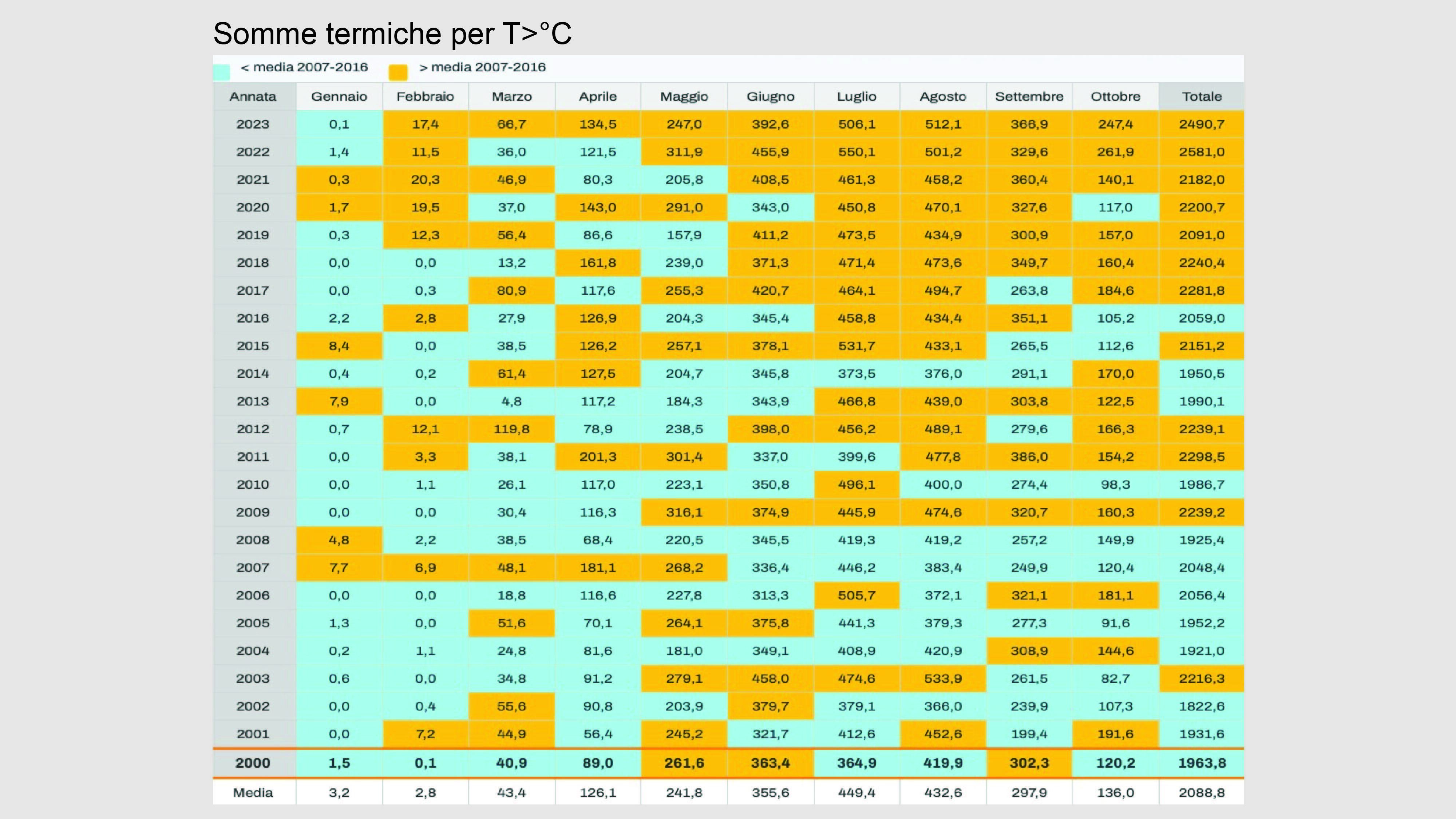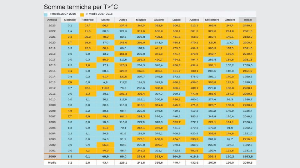 Heat summation data and annual rainfall for vintages 2000