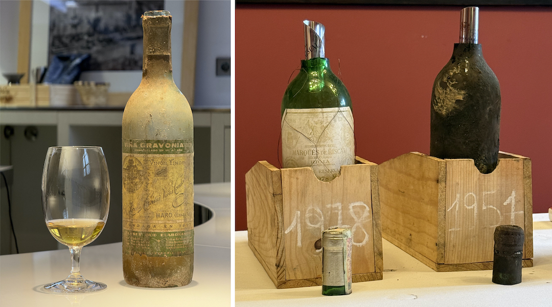 For this report, I had the opportunity to taste several bottles dating back to the 1950s. On the right are the 1951 and 1978 Marqués de Riscal; on the left, the 1977 Viña Gravonia Blanco Gran Reserva.