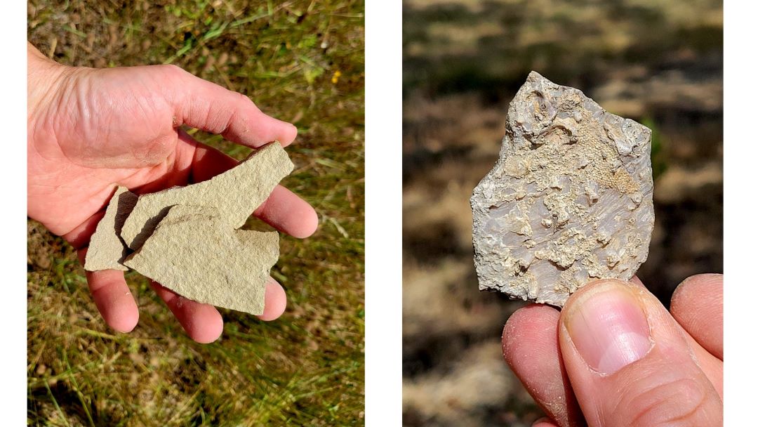 Left: Friable sandstone in Modigliana. Right: A tiny fragment of spungone. These stones can be the size of boulders.