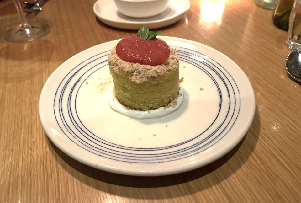 Olive Oil Cake; Finely Strawberries, Basil Crème Batida, Cookie Crumble