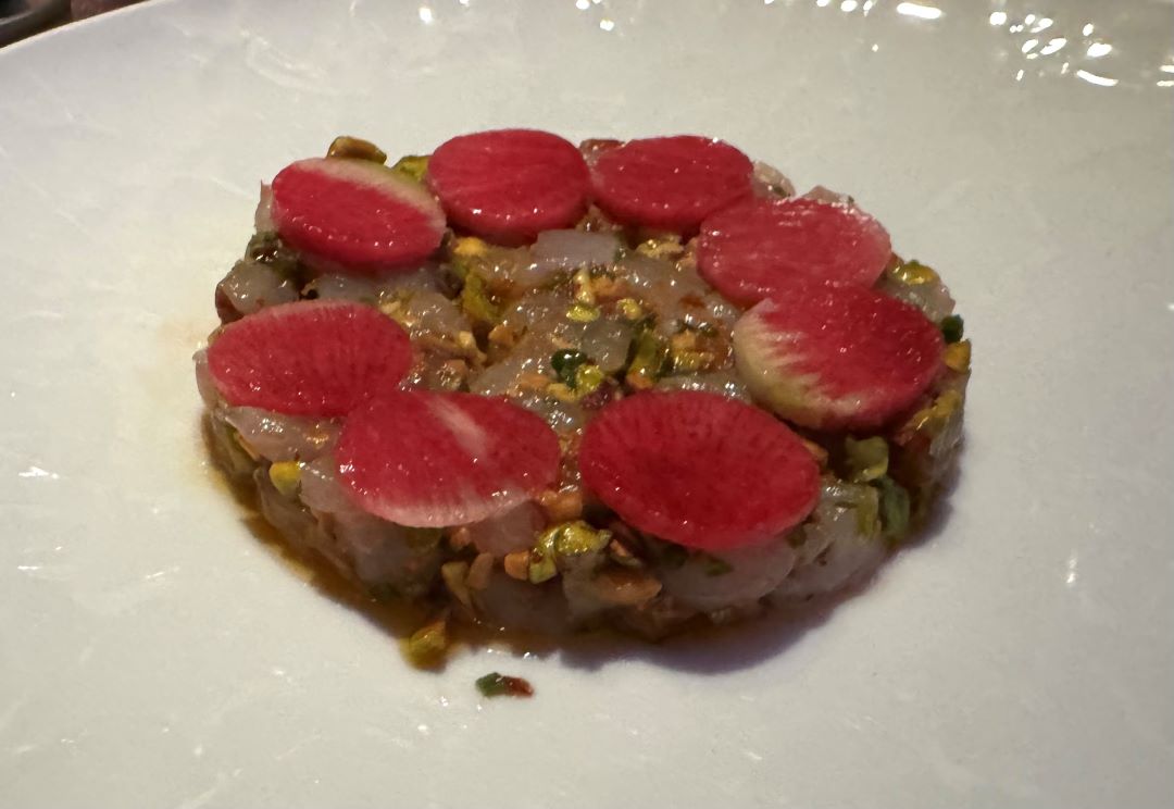 Branzino; Sea Bass Tartare, Pistachio, Calabrian Chile, Radish, Chive