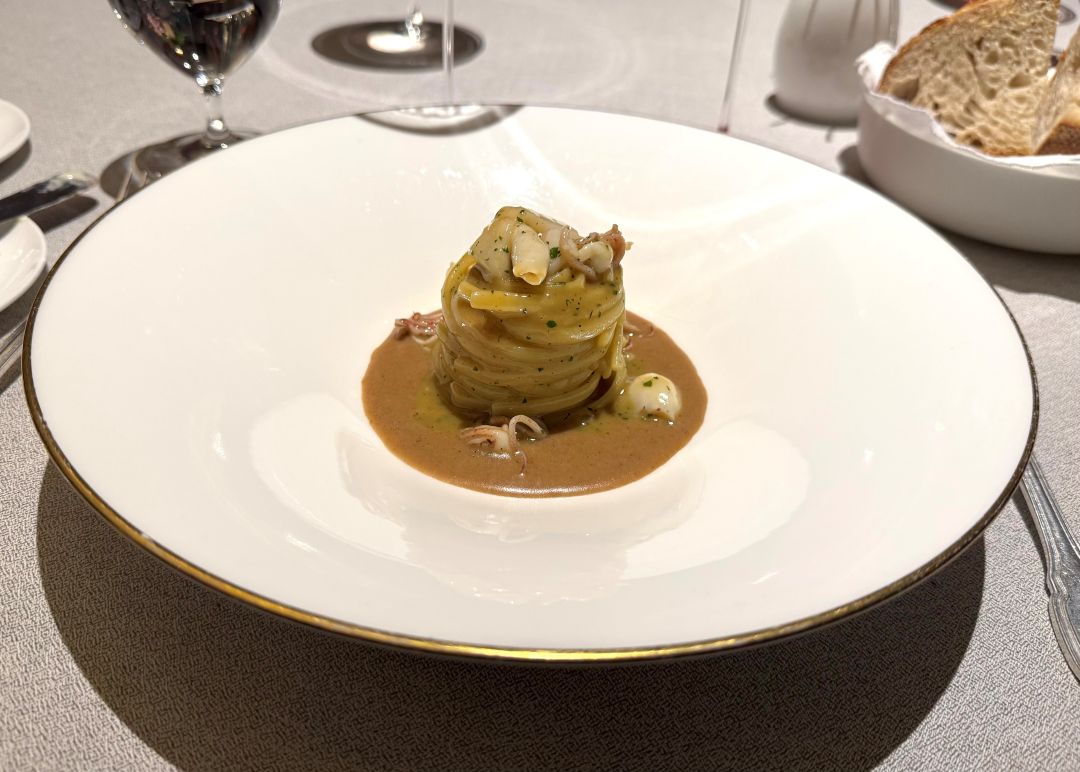 Linguina di Gragnano; Calamaretti, Salsa di Pane di Segale (Linguine from Gragnano; Baby Squid, Rye Bread Sauce)